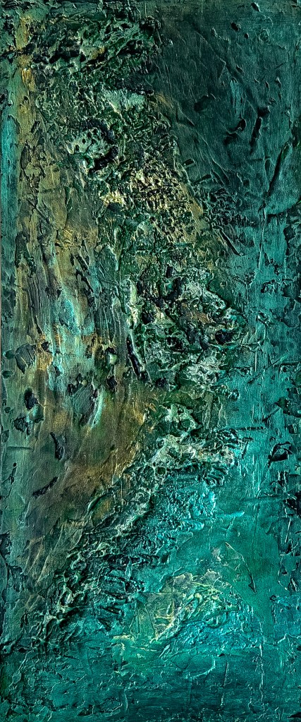 Acrylic in mixed media on hardboard, 30 x 70 cm