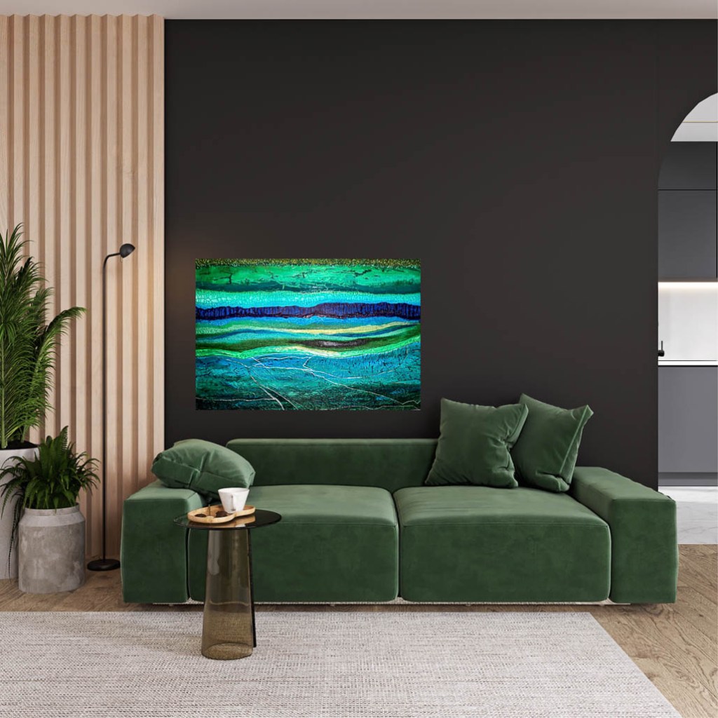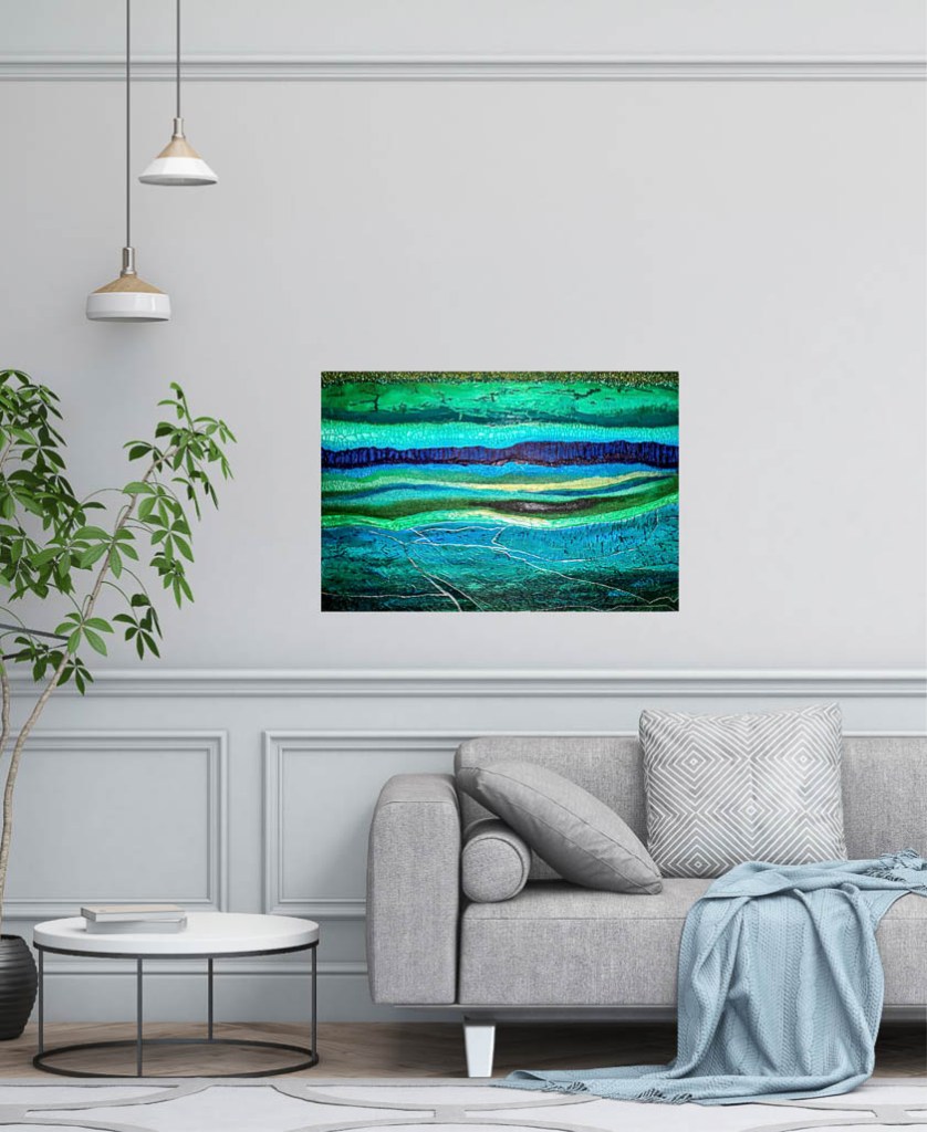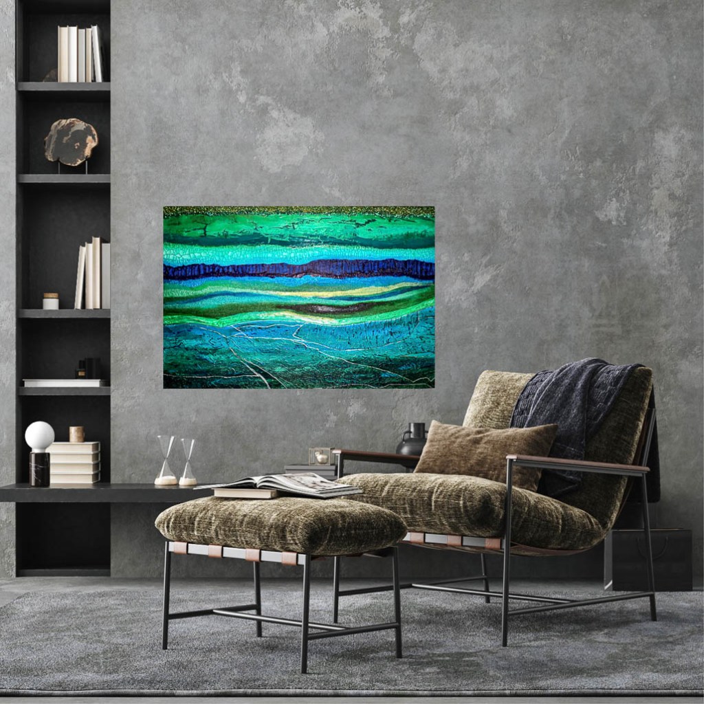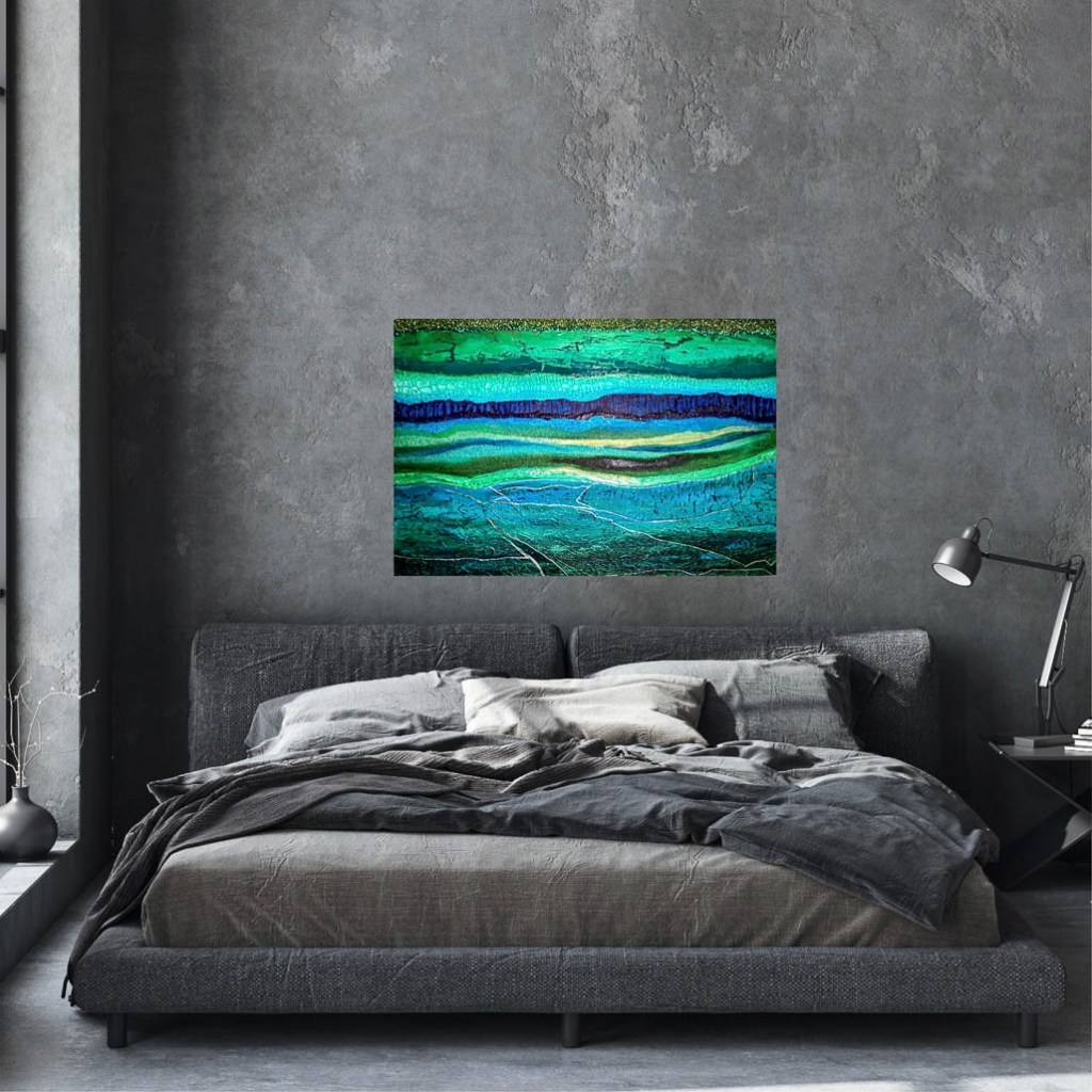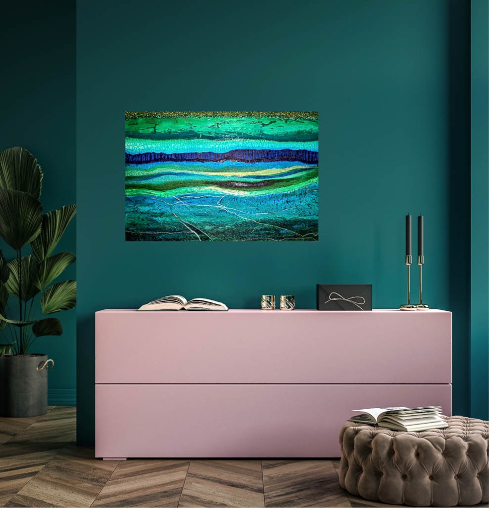 Acryl in Mixedmedia auf Leinwand. 50 x 90cm