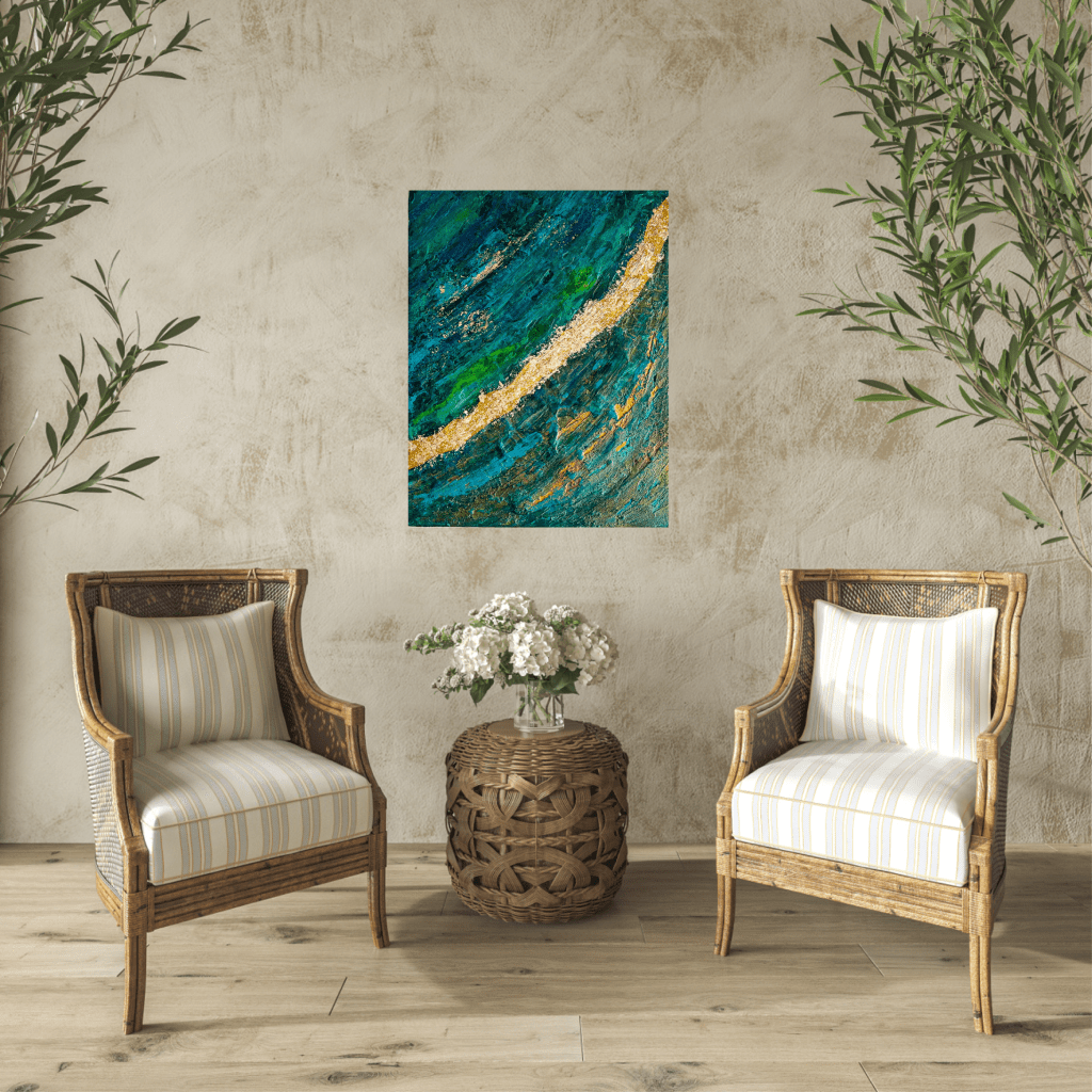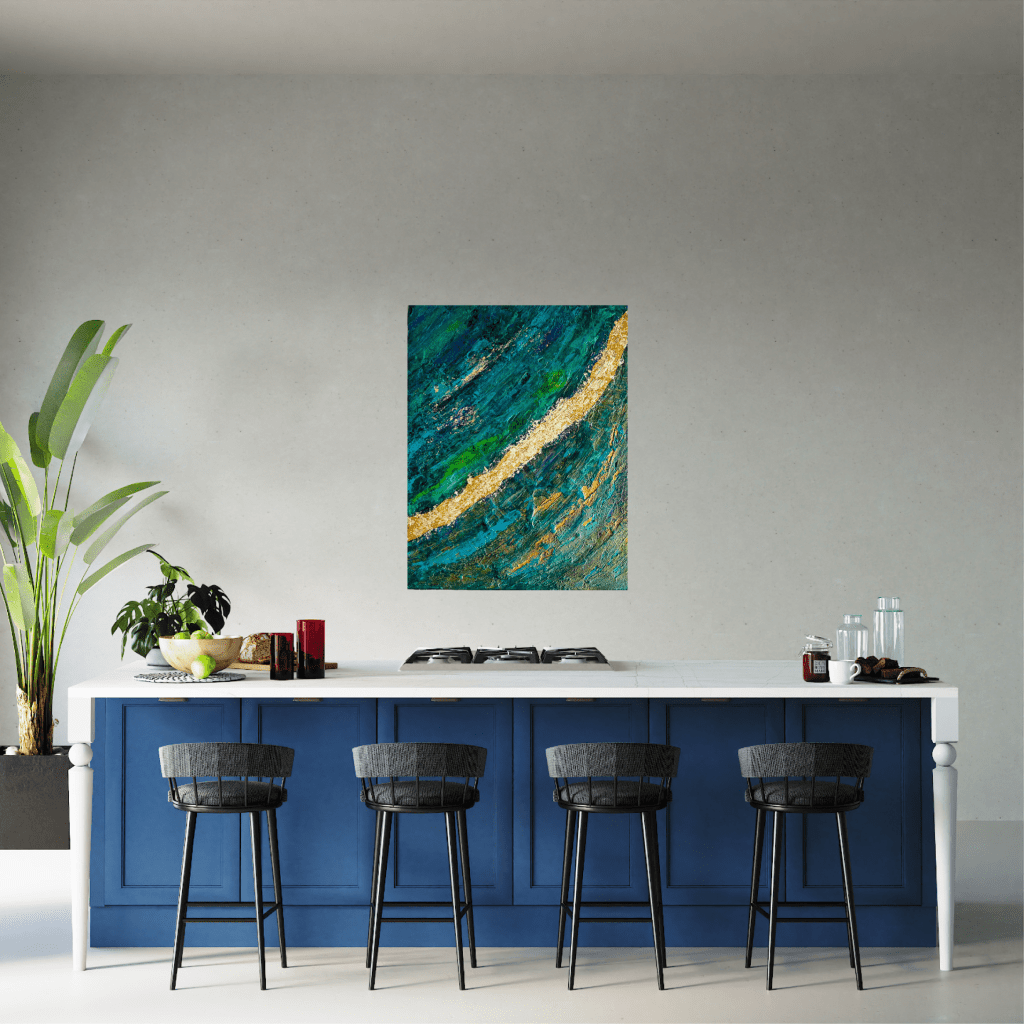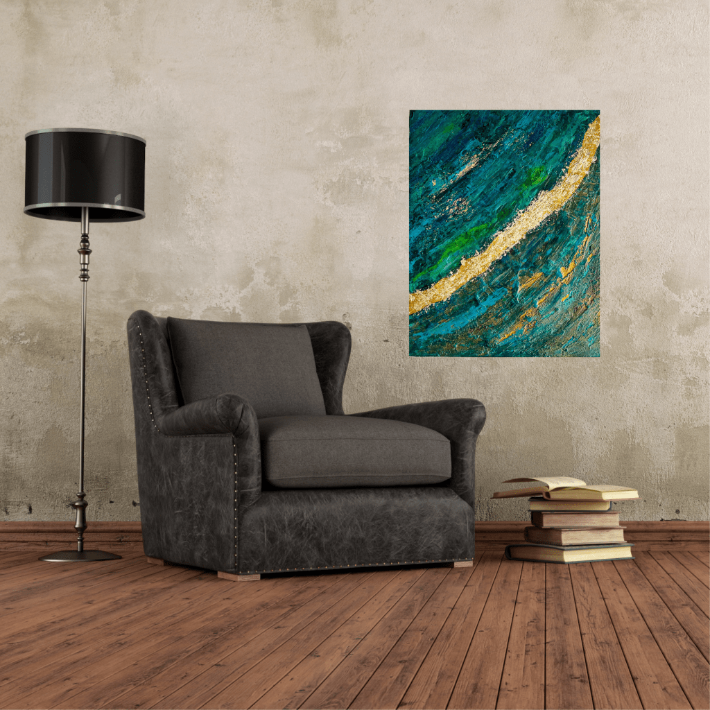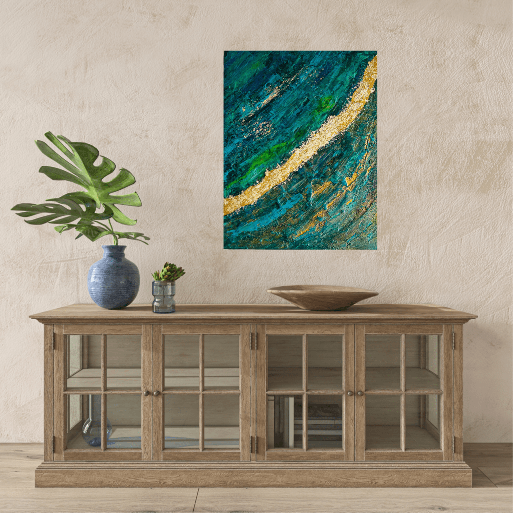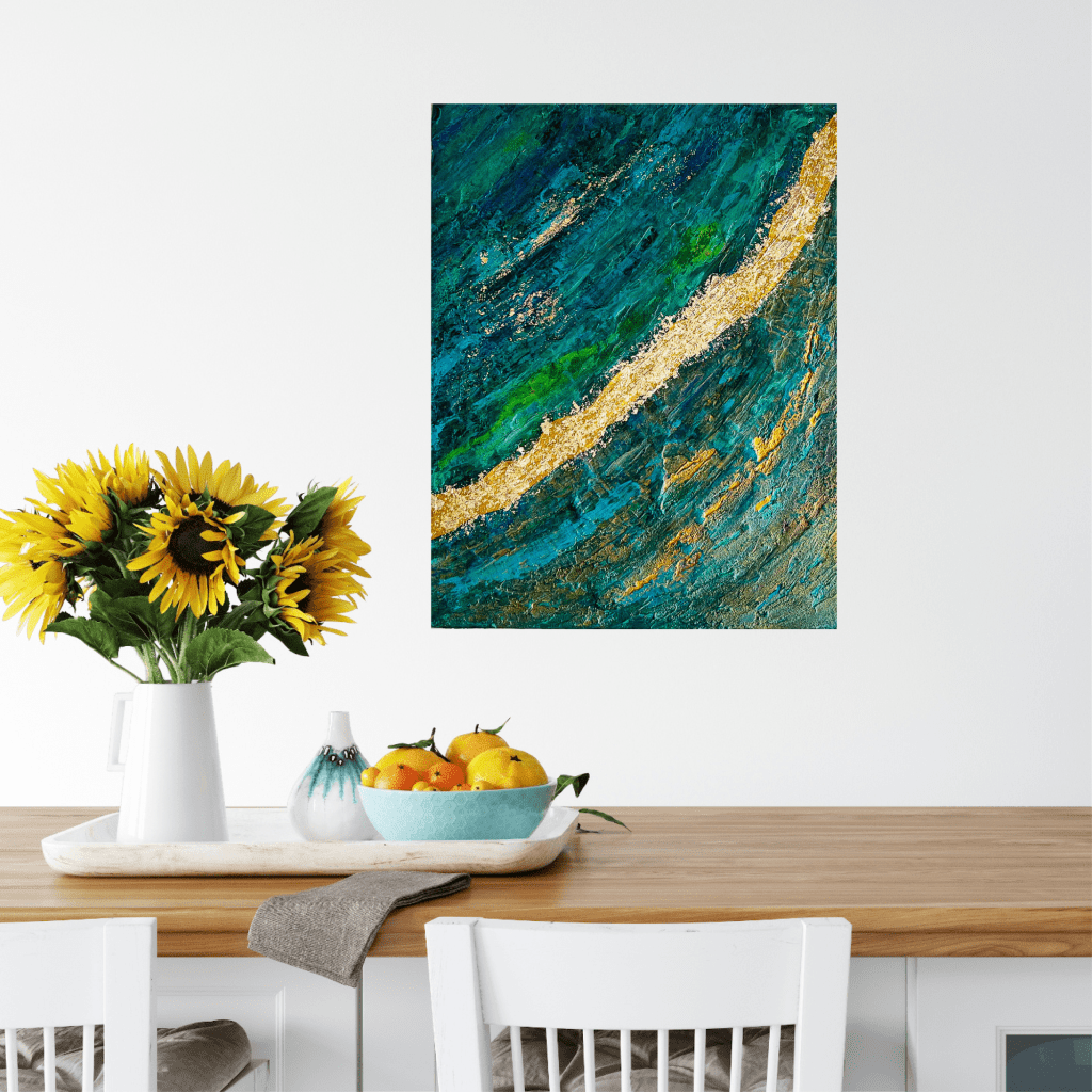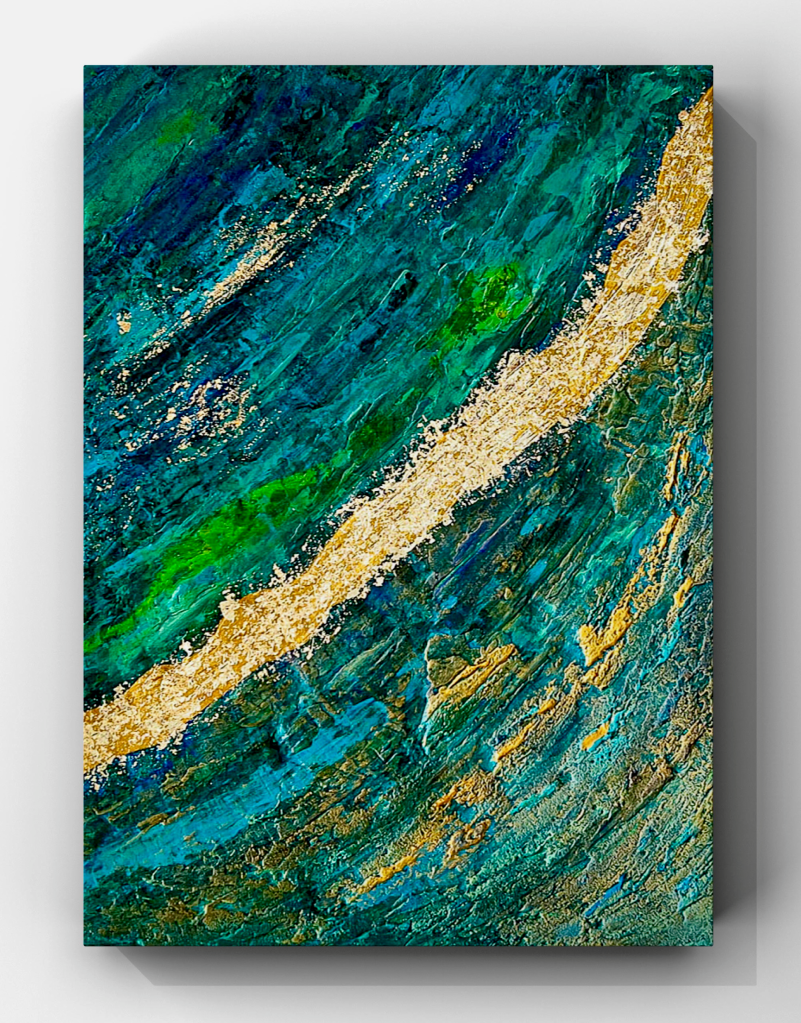 Acrylic in mixed media with gold leaf on canvas, 40x50cm
