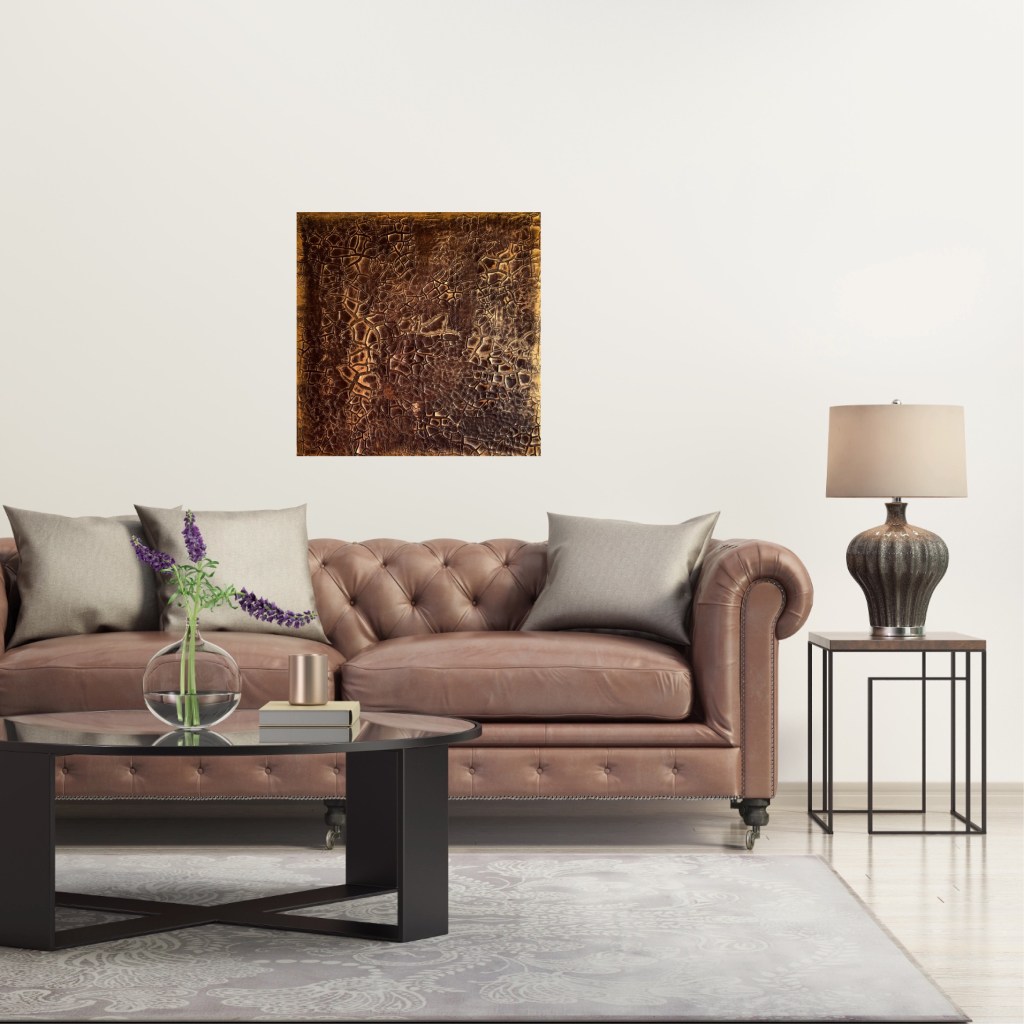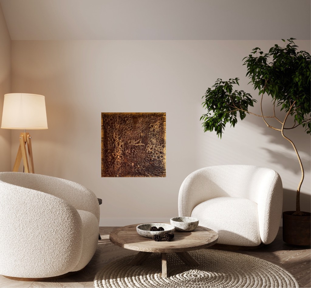 Dennoch treten in diesem Wirrwarr der Emotionen und Erfahrungen immer wieder brillante, goldfarbene Stellen hervor, die die glücklichen Momente, die Liebe, den Erfolg und die Freude sichtbar machen. Sie sind ein Spiegelbild unserer Realität, die von Kämpfen und Triumphen, von Dunkelheit und Licht gezeichnet ist. Es ist eine Einladung, die Schönheit in unserer Zerbrechlichkeit zu erkennen und die glänzenden Momente zu schätzen, die uns formen und erhellen.“