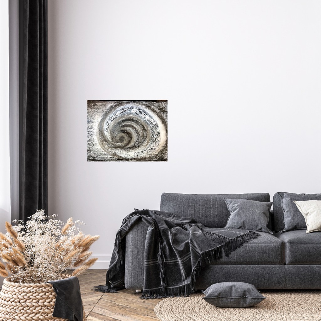 Das Bild „Gedankenkreisen“, fängt die Essenz eines Zustands des mentalen Aufruhrs ein, ausgelöst durch einen Konflikten oder ein Problem.