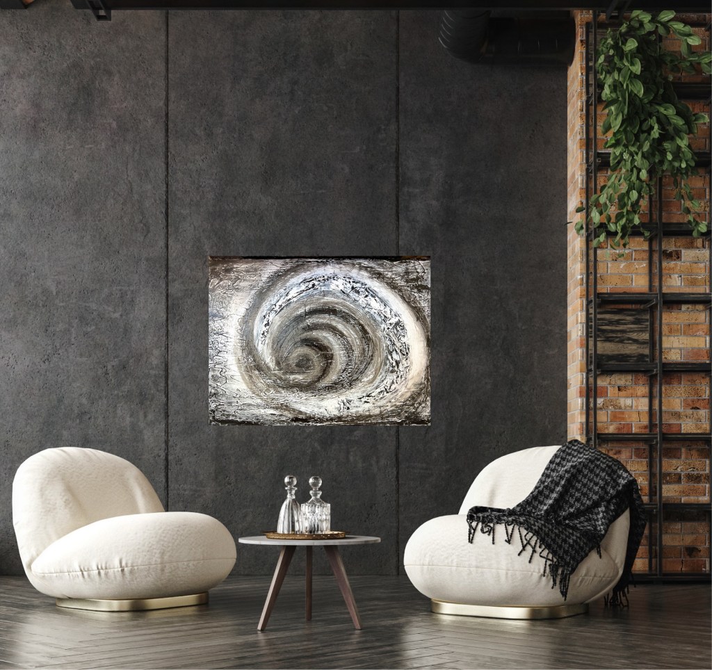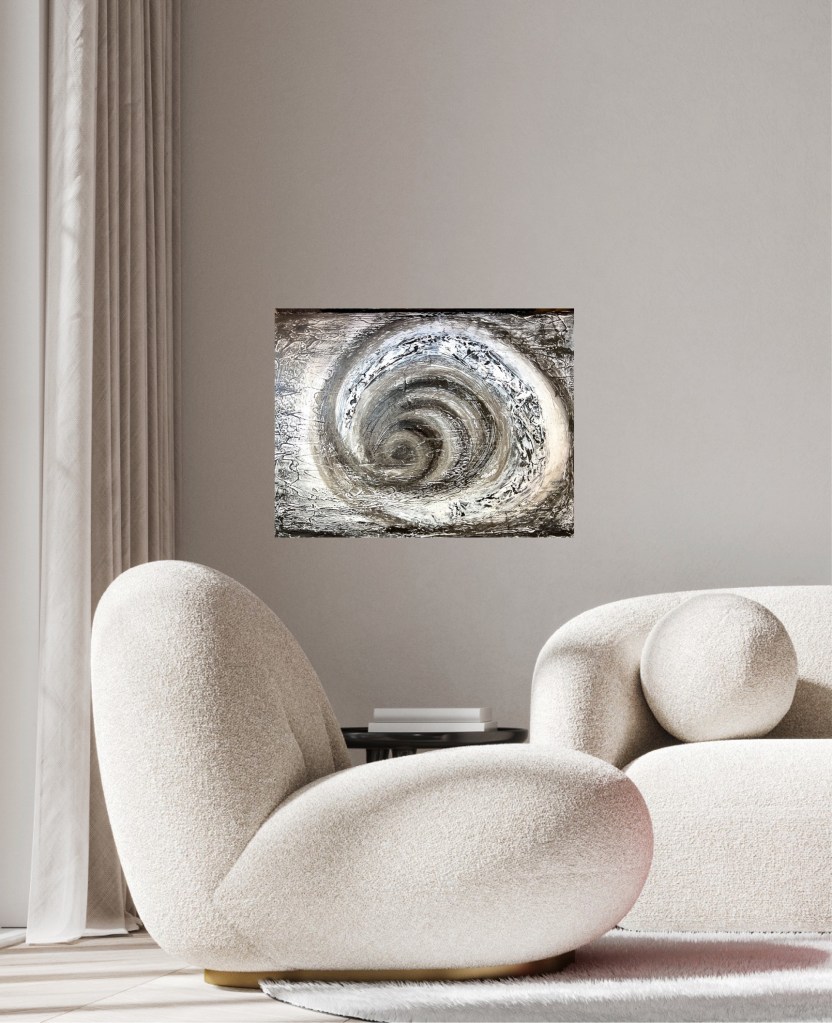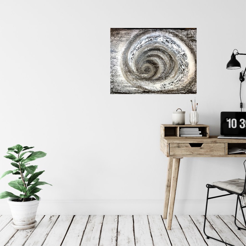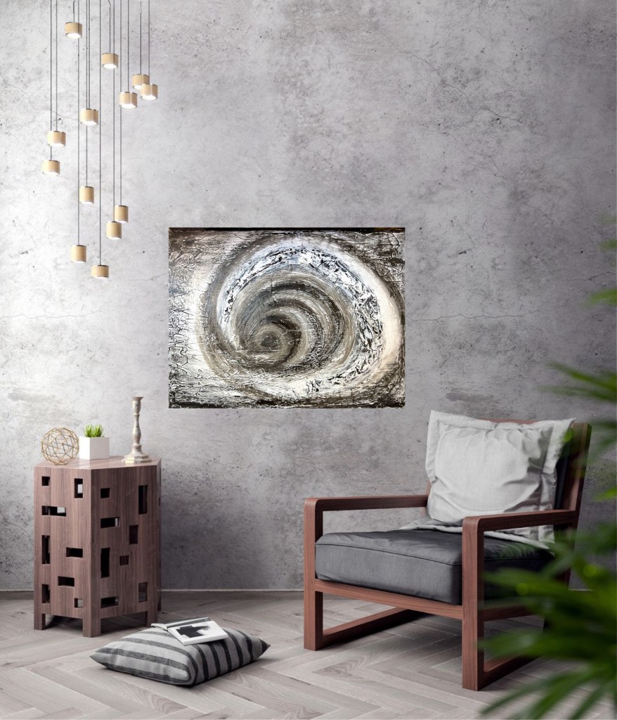 The painting „Circles of thought“ captures the essence of a state of mental turmoil due to a conflict or problem.