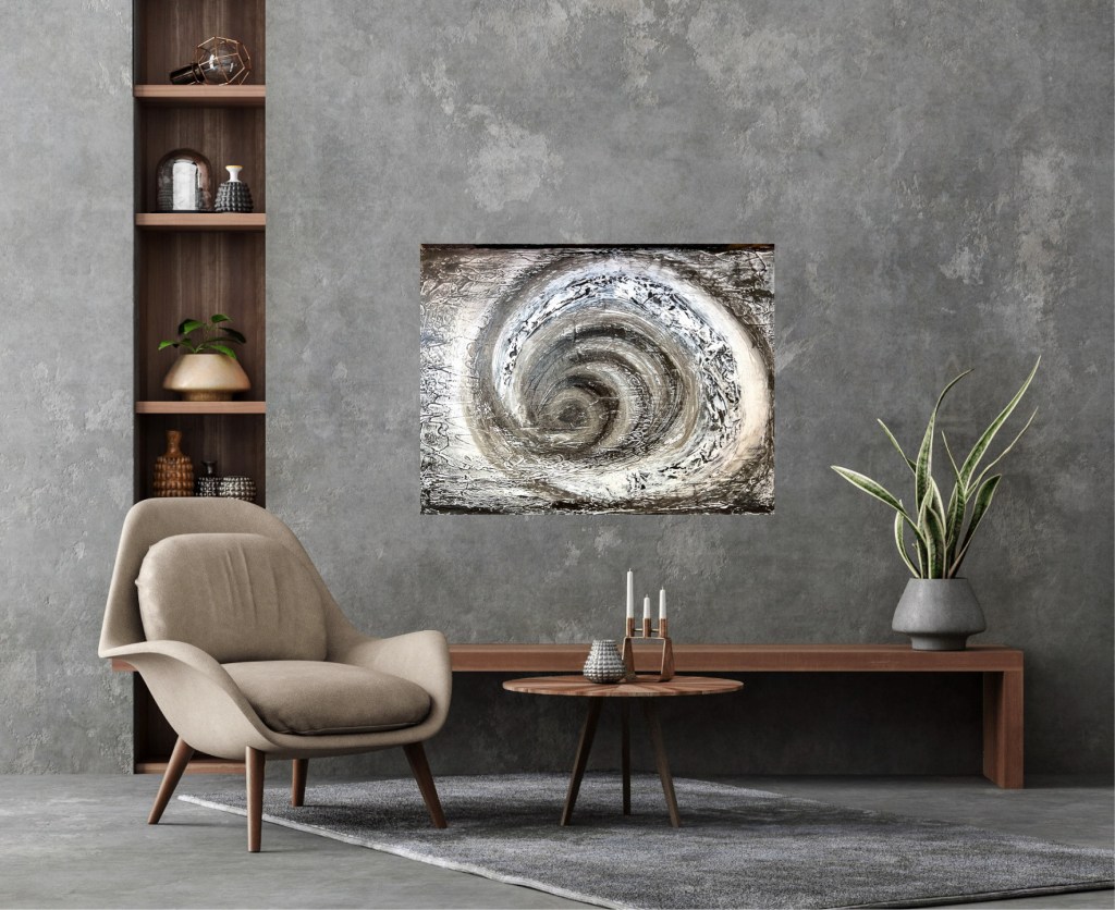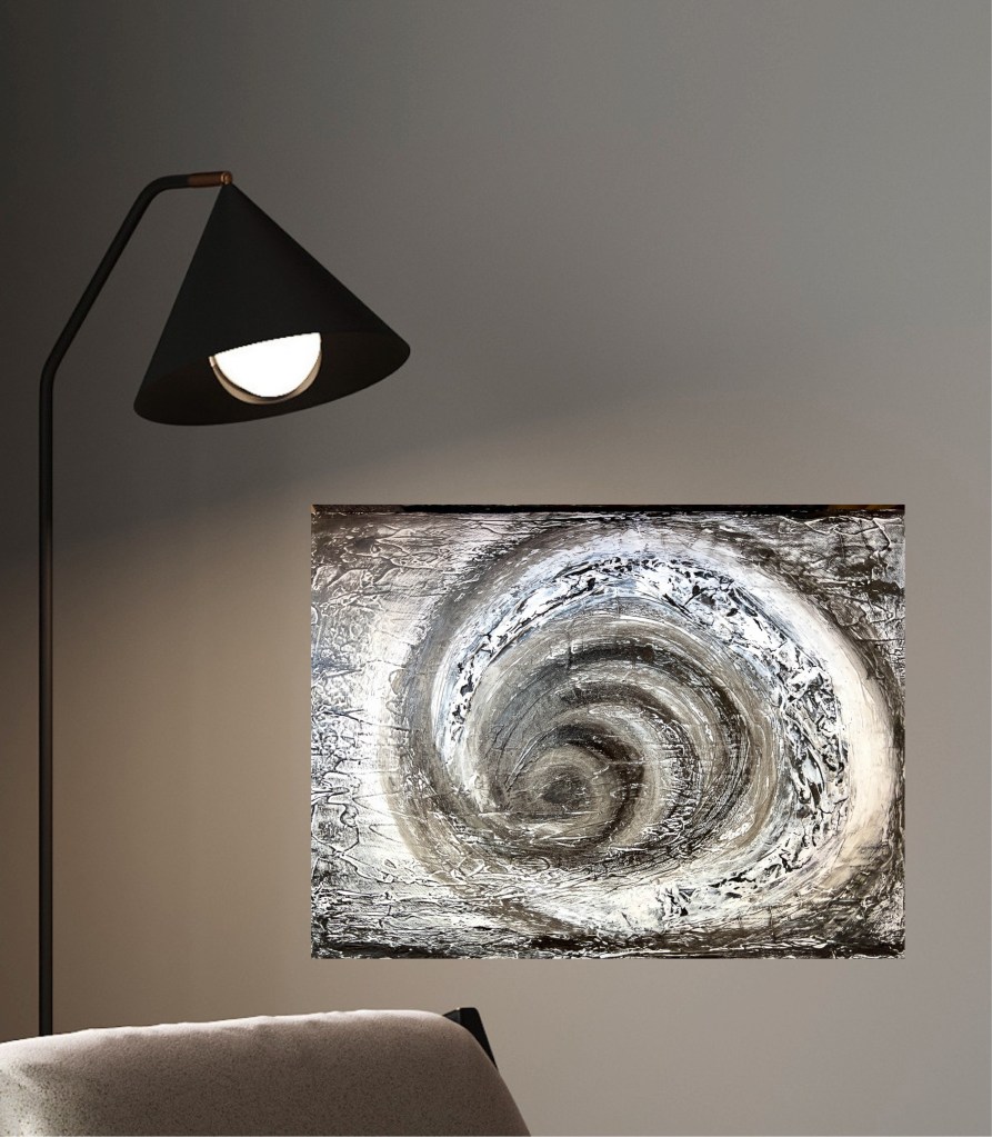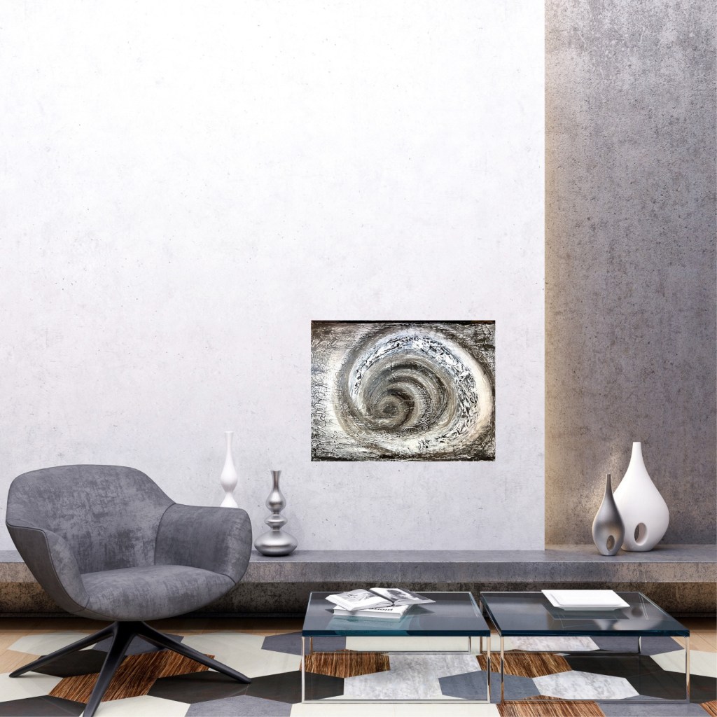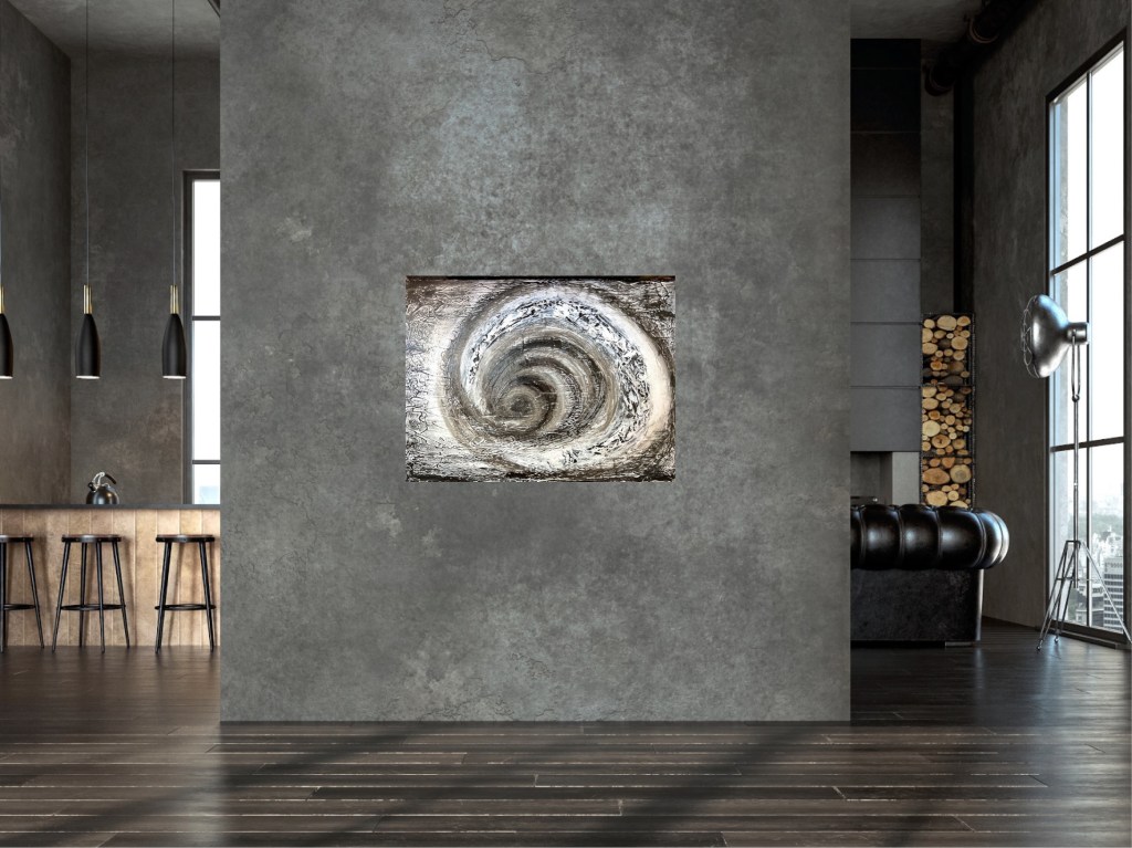 The painting „Circles of thought“ captures the essence of a state of mental turmoil due to a conflict or problem.