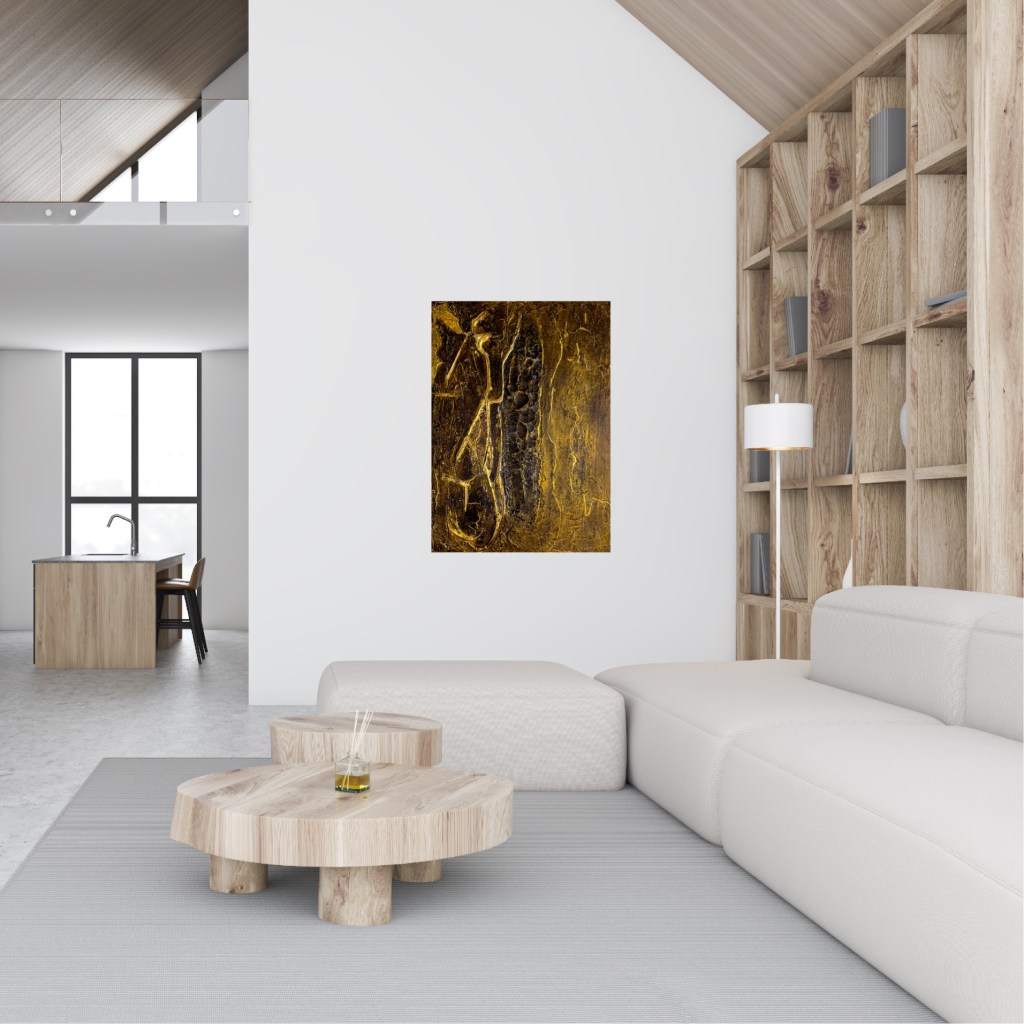 Los acentos dorados añaden una dimensión de riqueza y elegancia, subrayando el valor del silencio en un mundo agitado. «Silence is Golden» invita al espectador a detenerse y experimentar la calidad meditativa de la quietud mientras explora los sutiles detalles y texturas del cuadro.