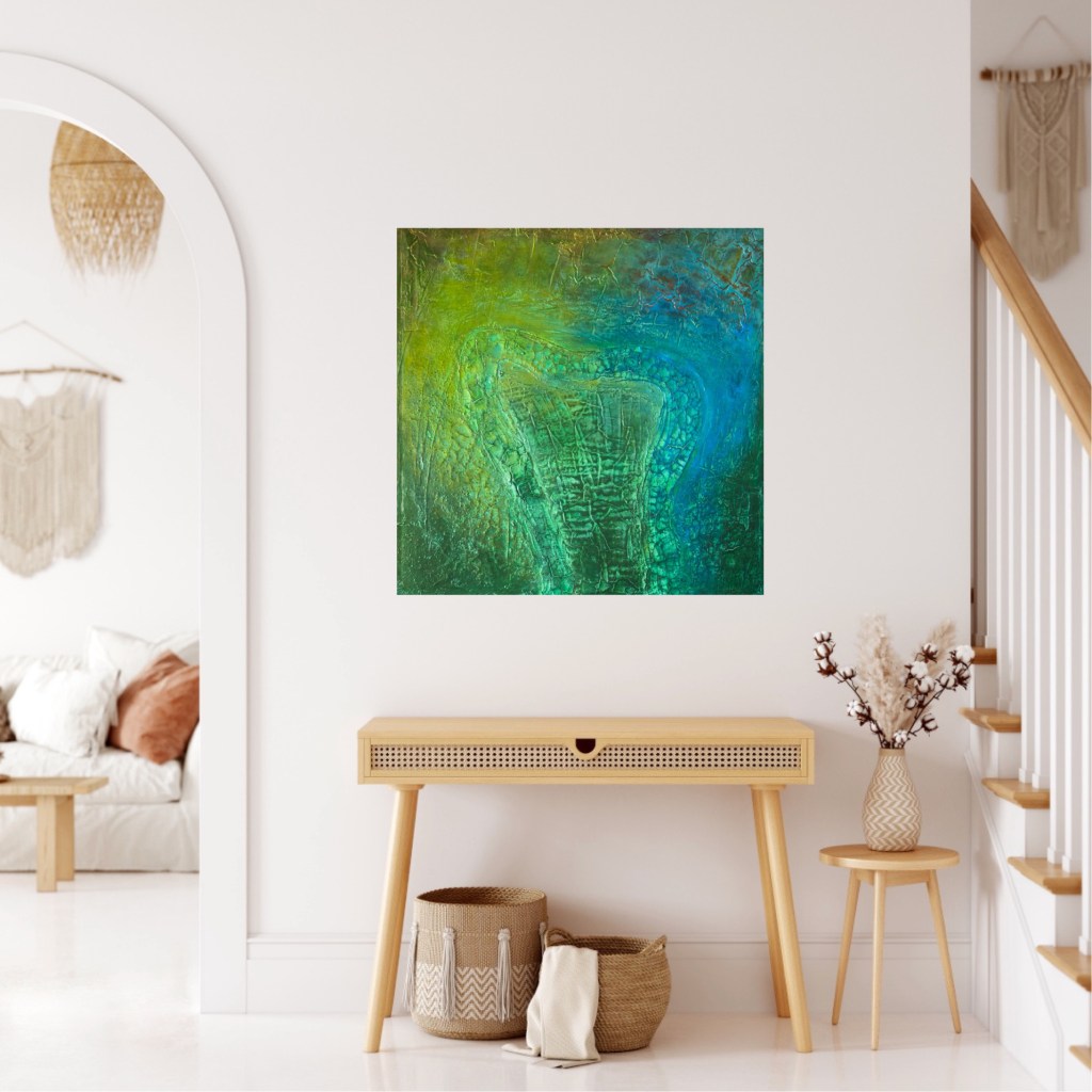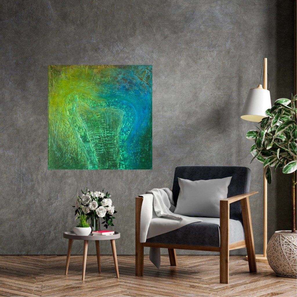 322_‘I feel green’ evokes associations of freshness, renewal and connection with nature. It reminds us of the energy of spring, of growth and blossoming. But it also evokes a feeling of harmony and inner peace. Green often symbolises hope, healing and balance. Perhaps the picture also reflects a state of balance in which one feels in harmony with oneself and the world. What do you think and feel?