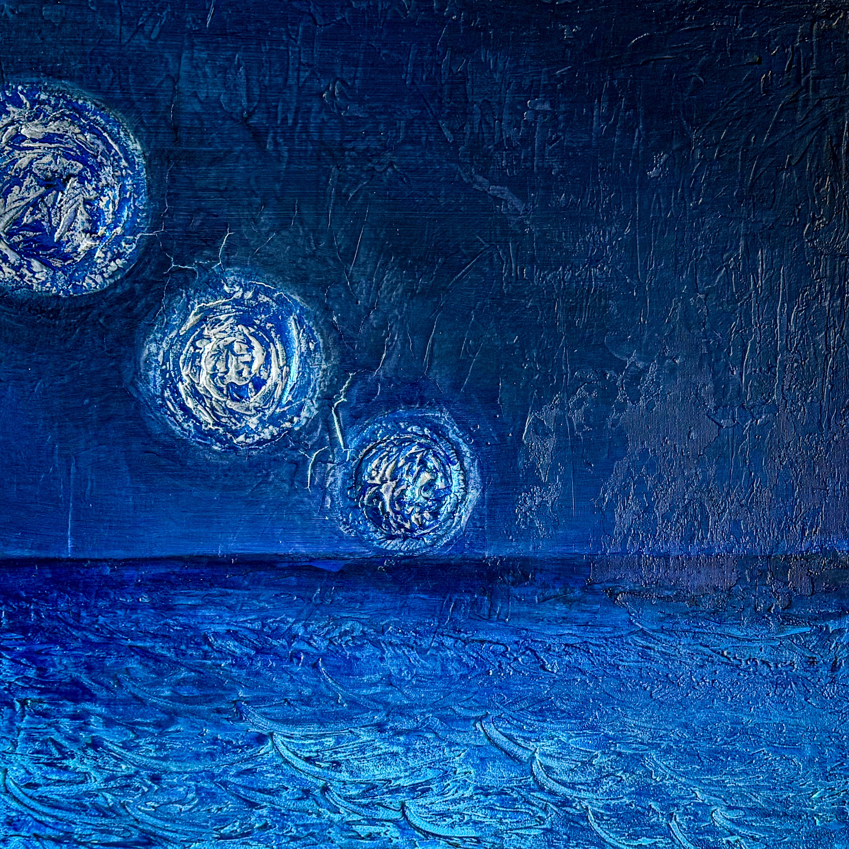 Mixed Media auf Leinwand, 60x60cm Das Kunstwerk „Moonset“ fängt eine mystische nächtliche Szene ein, in der der Mond in verschiedenen Phasen über einem ruhigen, tiefblauen Horizont zu sinken scheint. Die spiralförmigen, leuchtenden Monde, die in weiß-blauen Tönen dargestellt sind, verleihen dem Bild eine träumerische, fast surrealistische Atmosphäre. Die Texturen des Himmels und des Meeres sind … 301_moonset weiterlesen