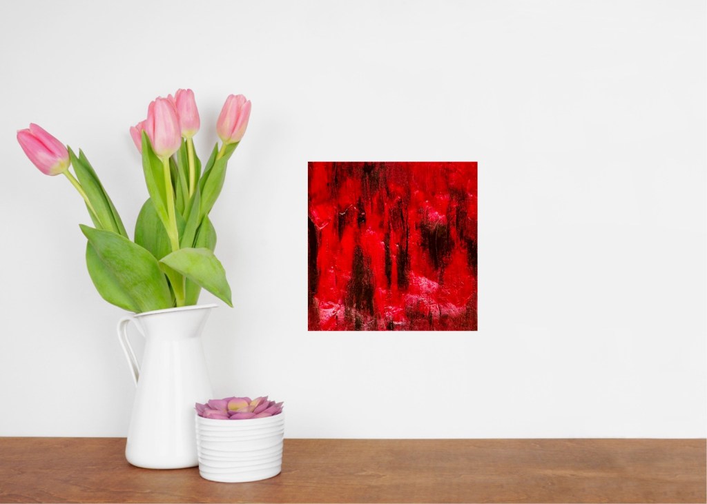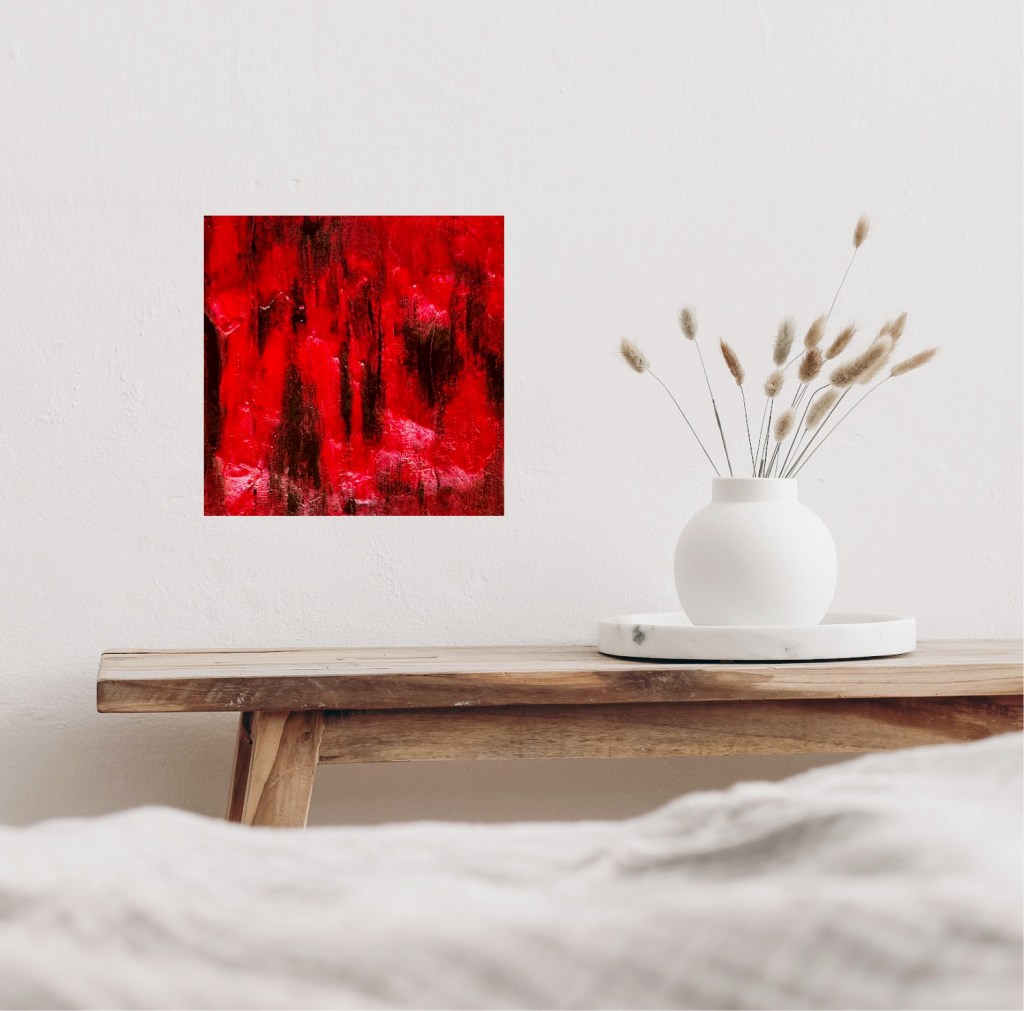 Das Kunstwerk „Fire“ ist eine intensive und emotionale Darstellung, die in leuchtenden Rottönen gehalten ist. Die Texturen und Pinselstriche erzeugen eine dynamische und chaotische Atmosphäre, die an Flammen oder glühende Hitze erinnert. Dunkle Akzente durchziehen das Bild und verstärken den Kontrast, wodurch der Eindruck von brennender Intensität und unaufhaltsamer Kraft entsteht. Die abstrahierte Formensprache lässt Raum für Interpretationen, wobei das Gefühl von Zerstörung, Leidenschaft oder innerem Aufruhr im Vordergrund steht. Die dichte Struktur und die kraftvolle Farbwahl vermitteln eine bedrohliche, aber zugleich faszinierende Energie.