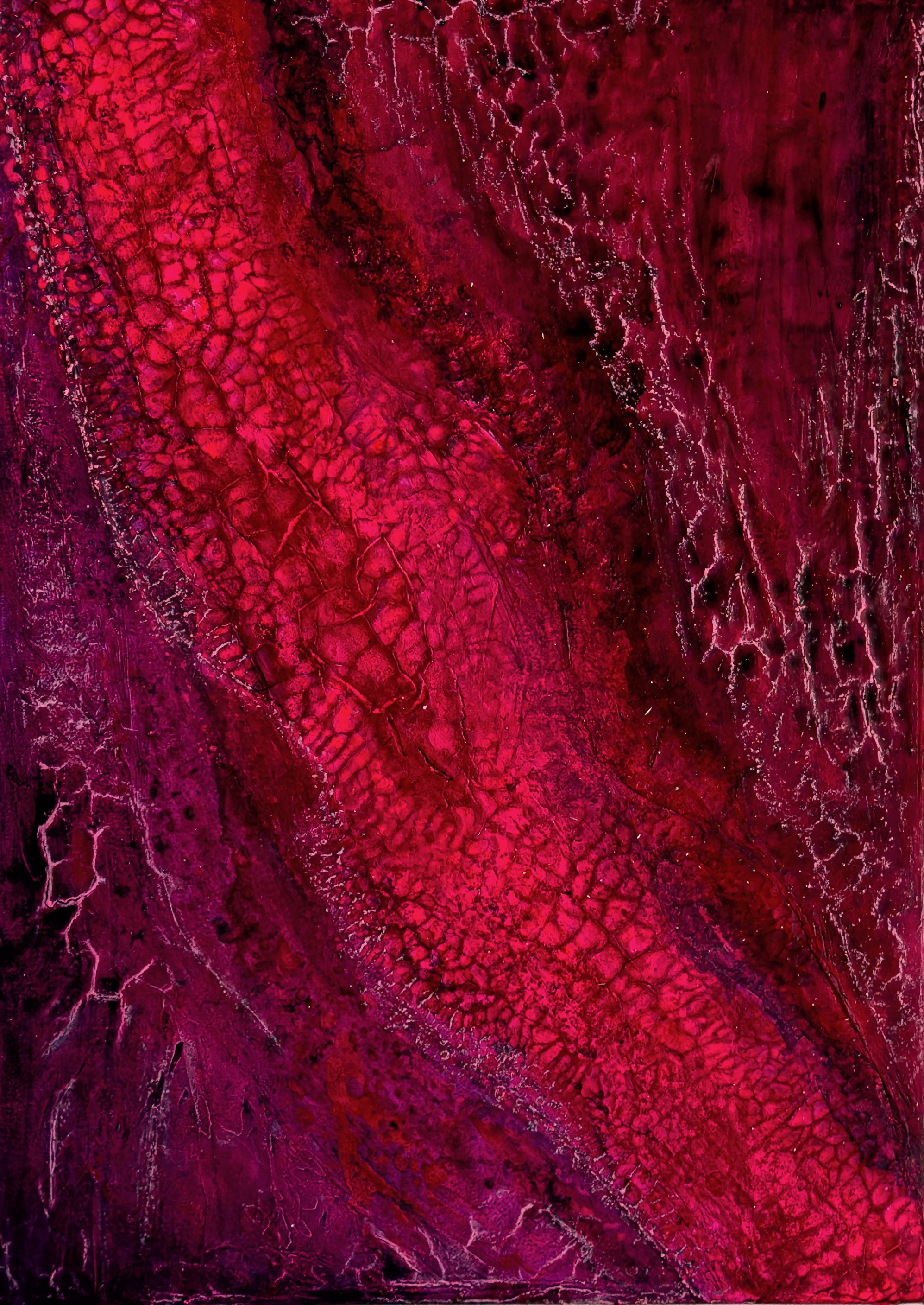 Acryl in Mixed Media auf Leinwand. 50x70cm Das Kunstwerk „Good Feeling“ besticht durch seine intensive Farbpalette und strukturelle Komplexität. Die dominierenden Rot- und Violetttöne erzeugen eine warme und leidenschaftliche Atmosphäre. Die Textur des Gemäldes, mit ihren rissigen und geschichteten Oberflächen, vermittelt ein Gefühl von Tiefe und Bewegung. Dieses Werk lädt den Betrachter dazu ein, sich … 316_Feeling good weiterlesen