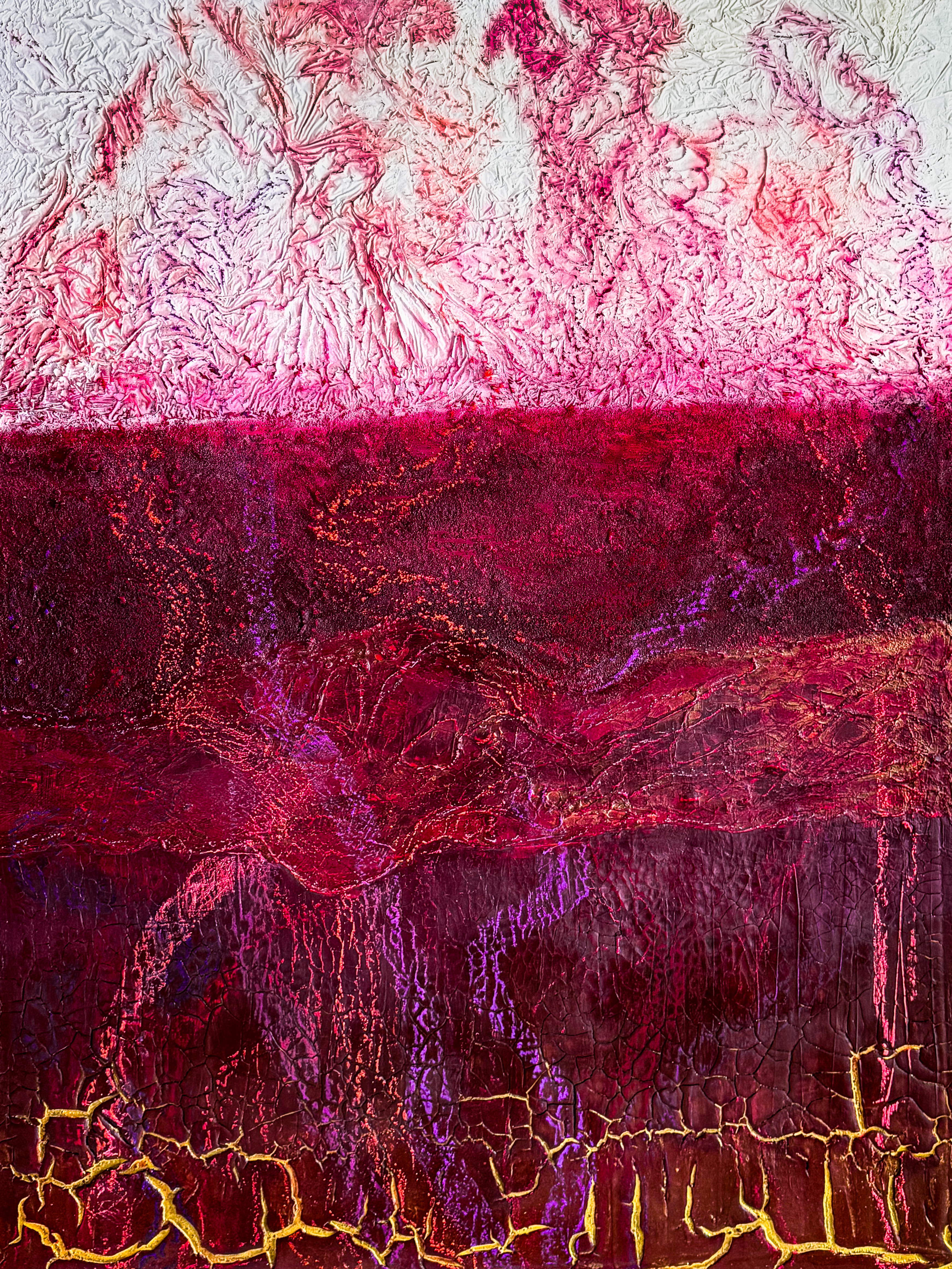 Acryl in Mixedmedia auf Leinwand. 90x120cmDas Bild „Lifelines“ ist der Beginn eines neuen Themas/einer neuen Serie mit dem Namen „Entwicklung und Transformation“. Das Werk „Lifelines“ symbolisiert die verschiedenen Stationen unseres Lebens. Der obere Bereich, geprägt durch ein reines Weiß mit feinen Strukturen, steht für Geburt – das Kind als „unbeschriebenes, weißes Blatt“, aber bereits mit … 336_Lifelines weiterlesen