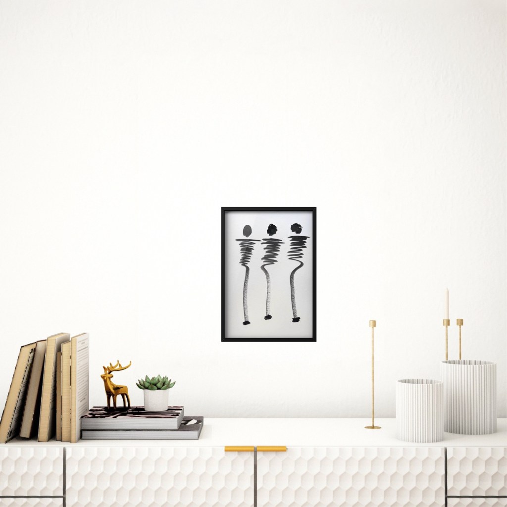 Ink on watercolour paper. 30x40cm, framed