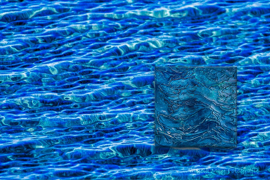 In „369_Wasserspiele“ tanzt das Licht über eine bewegte Wasseroberfläche, eingefangen in kräftigen Blautönen und geschwungenen Strukturen. Das Werk zeigt ein faszinierendes Spiel aus Bewegung, Tiefe und Reflexion – als ob sich Wind, Wellen und Licht in einem Moment verdichten würden.