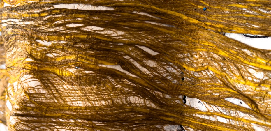 The artwork Gone with the wind… depicts a hidden face, enveloped by fine golden-brown threads. Like a protective or concealing net, the web covers the features, leaving them only faintly visible. This interplay of concealment and revelation creates a striking tension: the face appears both trapped and supported, sheltered and yet distant.