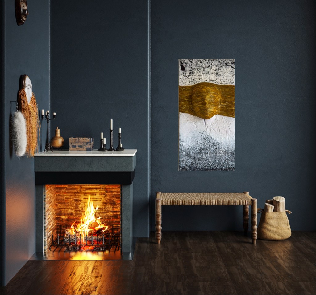 In der Serie Entwicklung und Transformation symbolisiert dieses Werk die Suche nach Identität und die Kräfte des Wandels: Das Gesicht als Sinnbild für das Individuum, die goldenen Fäden als Metapher für äußere Einflüsse, Erinnerungen und Erfahrungen, die uns umhüllen, formen und zugleich den Weg in eine neue Existenz ebnen.