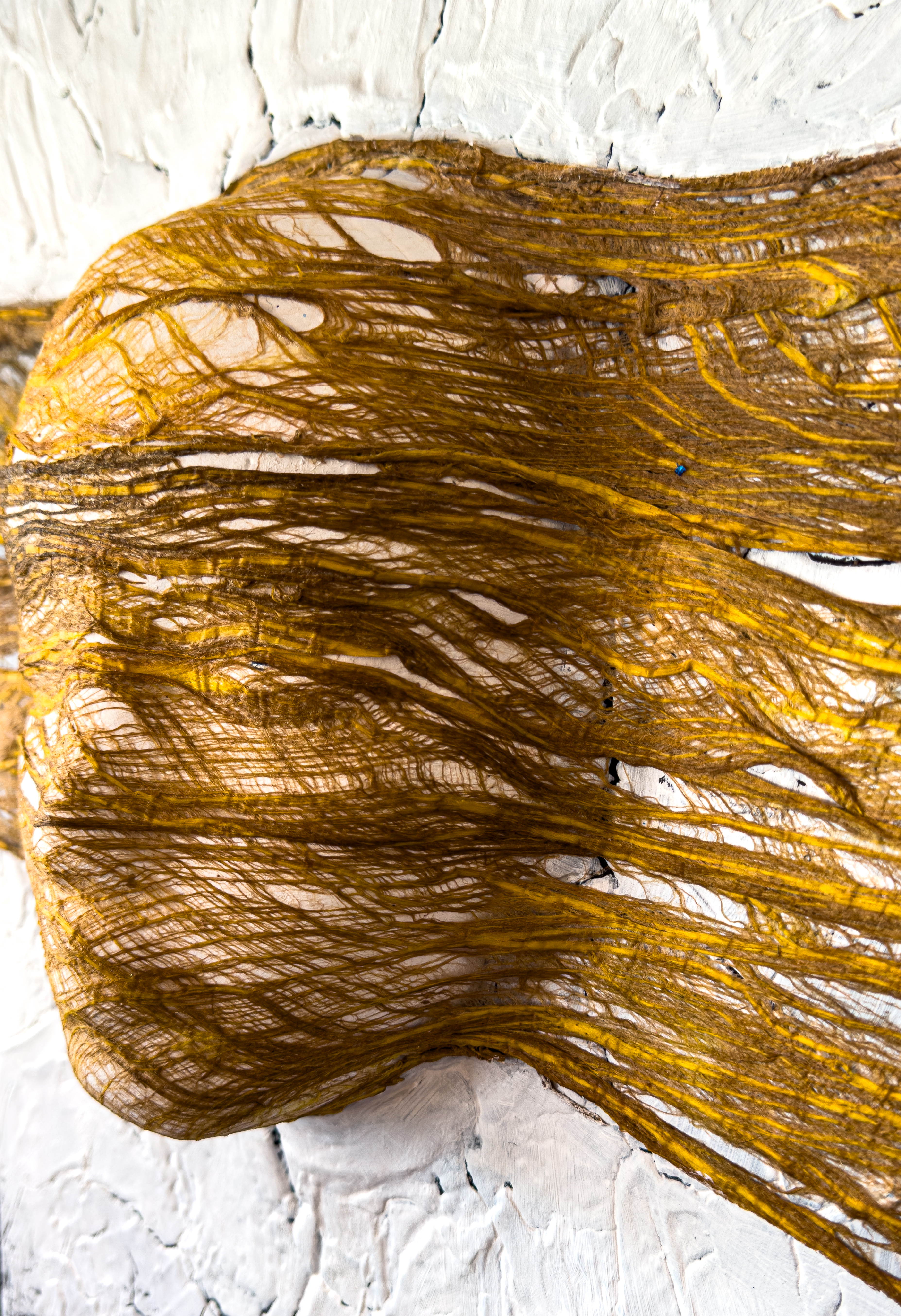 Acryl in Mixed Media auf Leinwand. 30x60cm.Ein Bild aus der Serie „Entwicklung und Transformation“ Das Werk „Gone with the wind…“ zeigt ein verborgenes Gesicht, das von feinen, goldenen Fäden umhüllt wird. Wie ein schützendes oder verhüllendes Netz legt es sich über das Antlitz, sodass es nur schemenhaft erkennbar bleibt. Dieses Spiel von Verbergen und Offenbaren … 368_Gone with the wind… weiterlesen